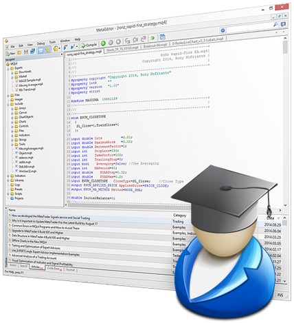 - The MQL4 language of trading strategies