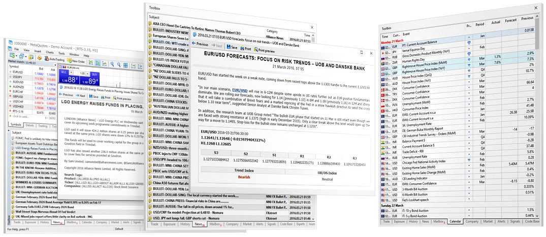 News reports from international news agencies are broadcast directly into the platform, providing you with the essential financial information. The economic calendar features the main macroeconomic indicators of different countries, allowing traders to analyze their impact on various financial instruments.