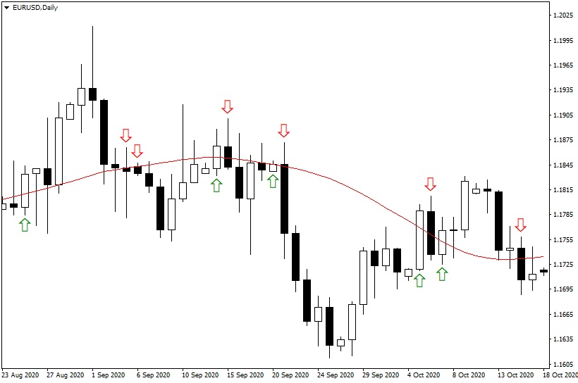Another interesting feature of this TMA Alert indicator for MetaTrader is that it can draw buy and sell signals as arrows on the chart when a crossover is registered.